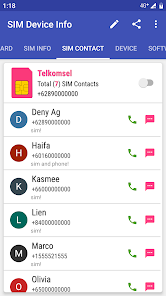 Displaying contact numbers stored on the sim card. In this tab you can delete sim contact and export sim contact into phone. Other features are also available such as copying contact, call, messages, and share!