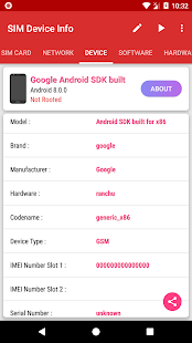 This app can detect and checking usefull information such as SIM Serial Number, IMSI Number, IMEI Number, Software, Hardware and much more...