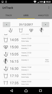 UriTrackは、排尿イベント(排尿、漏れ、衝動、カテーテルの使用)だけでなく、水分摂取量とメモを記録できるアプリです。これは、さまざまな尿の問題の診断によく使用される排尿ログまたは排尿日記の代わりになります。