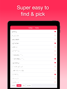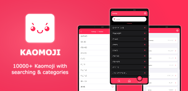 Kaomojiはテキストベースの絵文字で、日本から来た絵文字のスタイルです。 Kaomojiはテキストベースなので、どのメッセンジャーアプリでも簡単に使用できます。 Kaomoji絵文字は、創造的でかわいい方法であなたの気持ちを明らかにするのに役立ちます。 あなたの友達(またはあなたの片思い(˘³˘)❤)をより幸せにするためにそれを使用してください