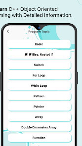 Learn to Code and Programming アプリケーションは、C 言語、C++ オブジェクト指向プログラミング、エシカル ハッキング、HTML、Python など、コンピューター プログラミングの 5 つの異なるコンポーネントの学習を支援します。