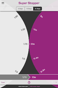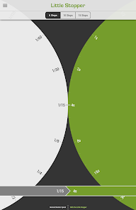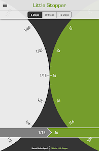 アプリは1/3段ステップでシャッター速度の全範囲を変換します。