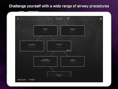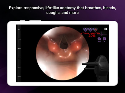 私たちのアプリは、人間の組織のダイナミクス、現実的なスコープの光学系、および生きているような気道の手順を再現するための動く流体の正確なシミュレーションによって可能になる、前例のない医療のリアリズムを提供します。また、継続的な医学教育(CME)の新しいモダリティを提供し、アプリ内で気道の手順を完了するためのAMA PRAカテゴリ1クレジット(TM)を提供します。