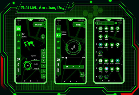 Clock, weather information, memory analyzer, music player and battery widget is available in Strip hi-tech launcher 2022