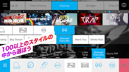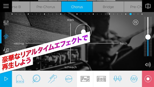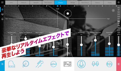 • 簡単な操作でクリエイティブに: テンポやハーモニーをアジャストして、曲の一部を編集し、リアルタイム効果を加えてプレイしよう