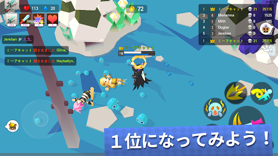 可愛いキャラクターで他のプレイヤーとモンスターを倒し、レベルを上げましょう。全てのプレイヤーを倒し、レベルアップするごとに新しいスキルを獲得できます。クラウンをゲットして勝利する瞬間を味わってみてください。ゴールドを集めて新しいキャラクターやアイテム、スキルを獲得できます。