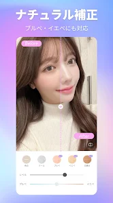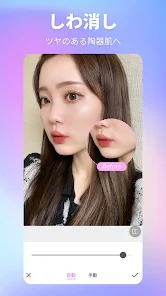 · 美顔補正小顔、丸目、中顔面短縮、しわ消しなど理想の顔で撮影