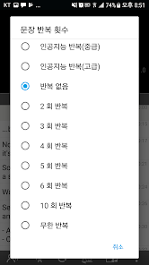 5.繰り返し:自動的に次の文を再生する前に、一つの文章を再生した後、一時停止します。一時停止中は、字幕や練習スピーキングを読み出すことができます。デバイスはTTS(テキスト読み上げ)に設定されている場合、字幕はTTSで読み取ることになります。