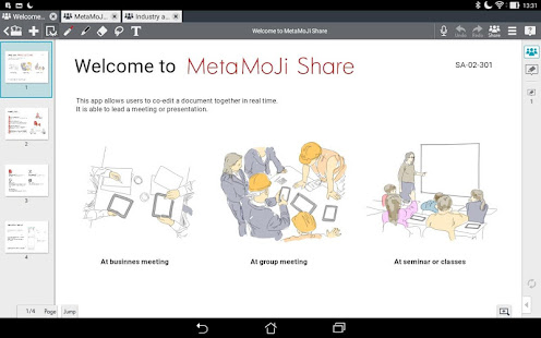 「MetaMoJi Note for Business」は、報告書、商談議事録などのメモ書きから、オフィス文書・PDFなど既存文書のビューアー、プレゼンテーションまで、様々な用途で使える法人様向けノートアプリケーションです。