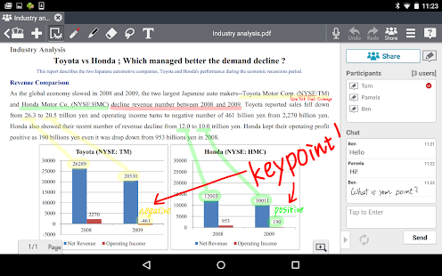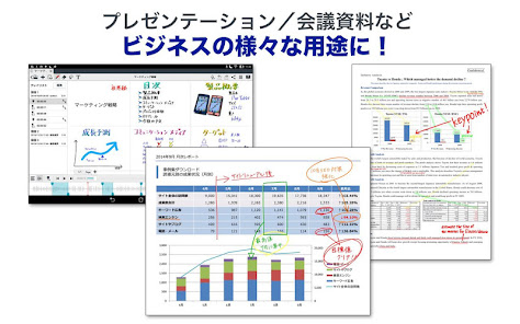 手書きによるライブプレゼンテーション、会議資料/報告書/メモ作成、PDF文書の読み込み・書き込みなどビジネスの様々な用途にご利用いただけます。