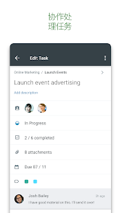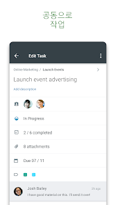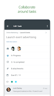 Planner は Office 365 用に構築されているため、同じタスクで共同作業したり、撮影した写真を直接タスクに添付したりすることができます。そのときにアプリを切り替える必要はありません。Planner を使用すると、チーム間のディスカッションや成果物はプランに付随するため、異なるアプリケーションからでも必要な情報にアクセスできます。