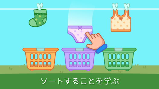 カラーソートゲーム色でアイテムをソートします。オレンジ、バイオレット、ピンク、緑、青、並べ替え色の楽しいあなたと一緒に色で洗濯物を一致する色のバスケットに分類するのに役立ちます。洗濯と学習の色をするのは簡単でやりがいがあります。