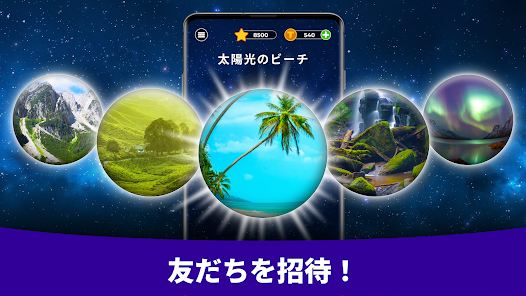 このゲームはユニークな進行システムが特徴です。質問に答えるたびに新しい背景の一部を獲得します。全レベルを完了し、すべてのフラグメントを集め、自然のギャラリーから息を呑むような新しい景色を解放しましょう