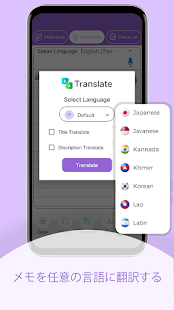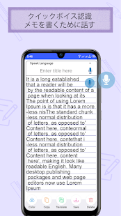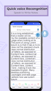 音声録音とライブ文字起こし通知のおかげで、人々は定期的な会話や周囲の状況をより簡単に聞くことができます。お気に入りのメモ帳をいつでも入手できます。このオフラインのメモ日記は、あなたの声を自動的に認識してメモを取り、テキストメモにスピーチを提供し、このスピーキングノートキーパーを介して管理します。シンプルで魅力的なグラフィカルユーザーインターフェイスを備えており、買い物ややることリスト、音声ノート, パスワード保護、翻訳、Voice recognition、メモの作成、テキストメモへのボイスメモなどの重要な機能を備えています。また、Voice notepad speech to text app タスクのリマインダーも含まれています。