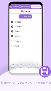•メモ帳チェックリストアプリ。