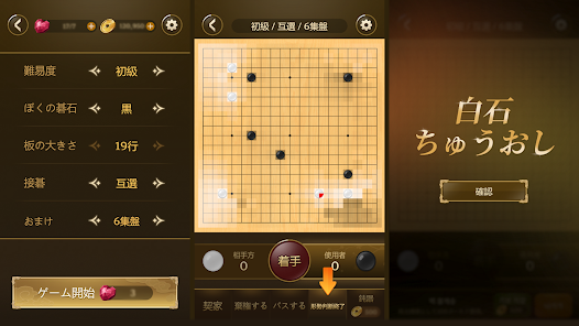 難易度、碁石、打ち碁などの「さまざまな設定」