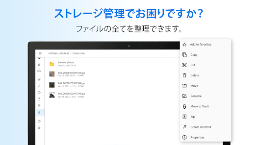 写真、動画、音楽、書類などは大切ですかもちろん、そうでしょうだからこそ、私たちはFile Commanderを20年近くにわたり開発、サポートしてきました 私たちの強力なファイルマネージャーとエクスプローラーは整理、保護、非表示のため、およびローカル、クラウド、ネットワークのファイルを完全に制御できるよう作成されました