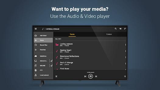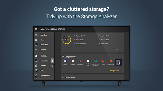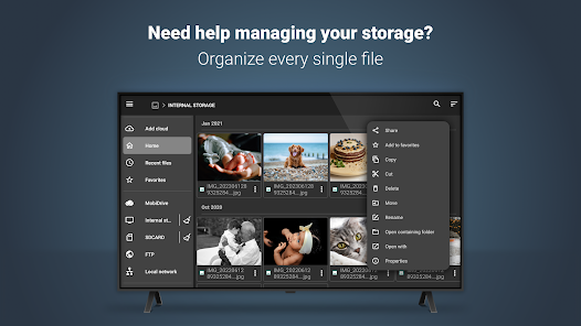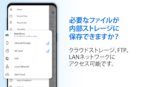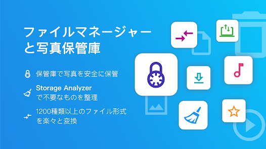 File Commanderは、Android13に完全に最適化されており、 複数のファイル管理およびセキュリティ機能保管庫で非表示と暗号化、ごみ箱、ストレージ分析アプリ、ファイル変換と共にMobiDriveの5GB無料クラウドを受け取ることができます。テレビ用のFile Commanderバージョンは、ユーザーフレンドリーなファイル管理機能でAndroid TVのメモリを制御することができます。