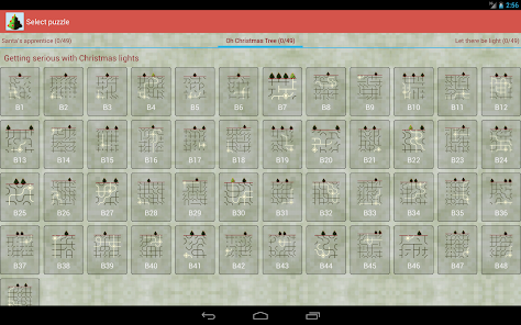 Light up Christmas 2 is now available with more puzzles and new graphics! Get it at https://play.google.com/store/apps/details?id=com.mocelet.christmas.lightup