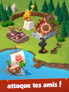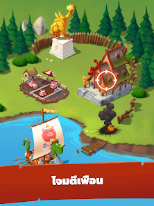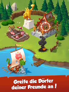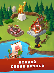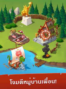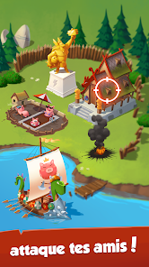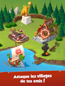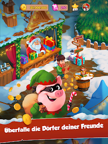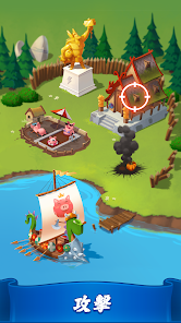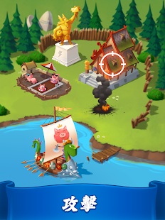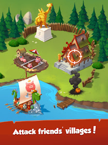 友達を攻撃して必要な物品を奪い取って村作りにつなげましょう!貯金箱を割る必要はありません。敵を攻め返して勝利すればいいのです。村を攻撃してきた敵に反撃!えいっ!奪われたアイテムを取り戻し、スロットを使って再びリッチになろう!友達の村にどんな宝が潜んでいるか、楽しみながら探り当てよう!