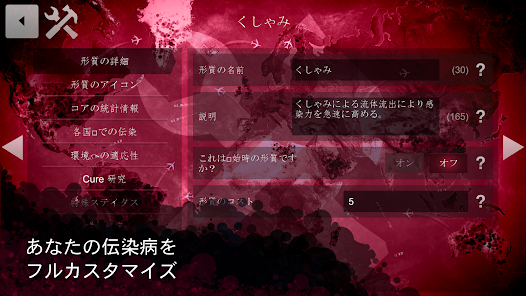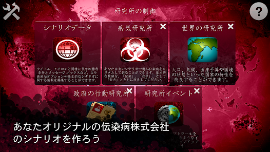 Plague Inc. 伝染病株式会社シナリオクリエイターはパワフルかつ簡単に使えるコンテンツ作成ツールであり、 あなたの最悪なアイデアを生かしたオリジナルの伝染病株式会社カスタムシナリオを開発/改造し世界中にシェアする事ができます。