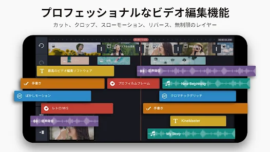 音楽付きビデオ、Vlog編集、ビデオコラージュ制作、スライドショー制作、ミュージックビデオ制作の編集アプリをお探しなら、モバイルでビデオを作るのに最適なビデオ編集であるKineMasterを試してみましょう。