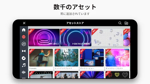 数回タップするだけで、ビデオのカット、ビデオの結合、エフェクトの追加、画像の追加、音楽の追加、テキストの追加を行うことができ、素晴らしいビデオをすばやく作成できます。KineMasterは、vlog、スライドショー、ビデオコラージュ、およびグリーンスクリーンビデオをこれまで以上に簡単に作成できるようにします。KineMaster のアセットストアは、YouTube、Instagram、Facebook、TikTok での成功を可能にするロイヤリテ フリーの音楽、効果音、ステッカー、ビデオ テンプレートの巨大なライブラリをビデオ編集者に提供します。