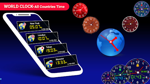 世界時計機能を使用すると、ホーム画面で同時にさまざまな国の時刻を設定したり、他の国の時刻を確認したり、自分の時刻と他の世界の都市の時刻との時差を比較したりできます。ライブ時計と世界時計を使えば、他の都市の時刻を知ることができます。今のドバイの時間、オーストラリアの時間、英国の時間、そしてあなたのアンドロイドフォンの全世界の時間のように。