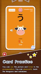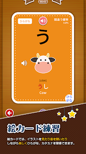 練習した文字の例文を確認しながら覚えることができます。また動物の鳴き声や物の音なども聞くことができるので、お子様も楽しみながら勉強ができます。