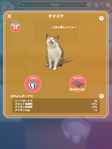 ゲームを見守ってくれる猫のタマスケにごはんやマタタビをあげよう!