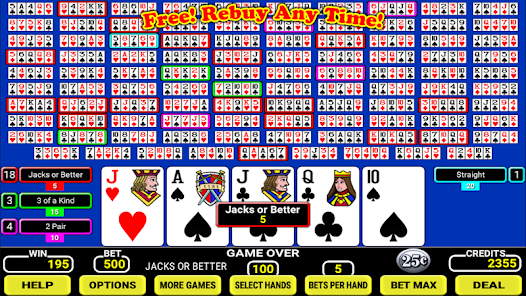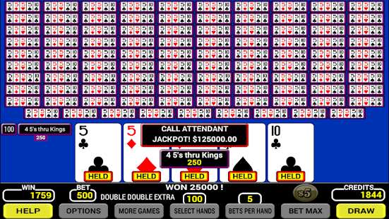 100ハンドマルチプレイビデオポーカー。一度に100ハンドで100倍のアクション!スロットマシンとは異なり、ビデオポーカーでは、プレイヤーはスキルを使って家を打ち負かすことができます。ベガスのようにこの人気のあるゲームをプレイしてください。