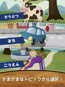 お子様は 子供のための英語 で遊ぶだけで、動物、色の名前、体の部位、数字、乗り物など、様々な単語を英語で学ぶことができます。