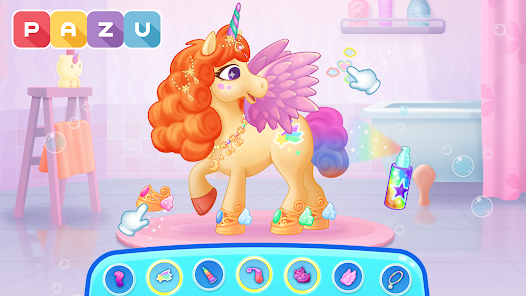 あなたのユニコーンの世話をし、それを洗い、服を着せ、その色とスタイルを選び、そしてそれをあなた自身のかわいいポニーにしてください。