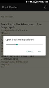 Please note that Book Reader app is working with text-based formats only. PDF-based formats are not supported! Also no speech synthesis!