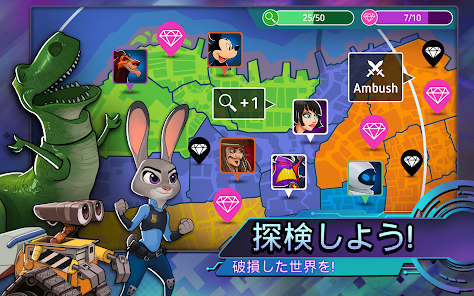 • Mr.インクレディブル、ラルフ、バズ・ライトイヤー、ジャック・スパロウ、ジュディ・ホップス、ウォーリー、マイク・ワゾウスキなど、ディズニーとピクサーの70人のキャラクターを集めてバトル