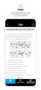 Scan MyPeugeotアプリケーションを使用すると、さまざまなタブを使用して、対応するユーザーガイドのすべての情報にすばやくアクセスできます。