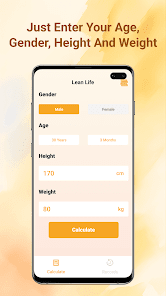 「リーンライフでは、性別 を選択し、年齢 、身長 、体重 ⚖ を入力するだけで、現在の BMI 値がすぐに計算され、自分の体調を明確に把握できます。