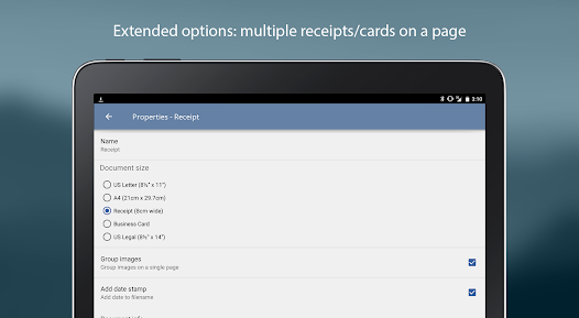 SureScanの便利な「自分にメール送信」機能により、たった1回のタップで、文書を事前に定義されたアドレスに送信したり、Evernoteなどのオンラインストレージにアップロードできます。
