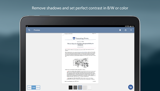 TurboScanは、先進の高速アルゴリズムを利用して、文書のエッジを正確に検出し、文書をまっすぐに補正視点を補正し、影を除去し、白黒という完璧なコントラストを設定します。