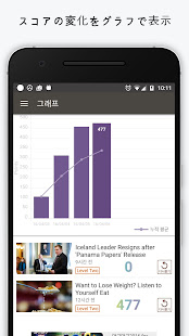 私の実力が向上していることをグラフで確認してください。グラフで毎日の目標スコアを定めて挑戦してみてください。