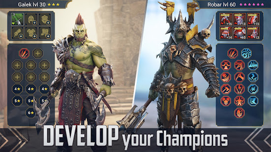 マルチプレイヤーアリーナなどのオンラインモードでは、自軍のチャンピオンを他のプレイヤーと戦わせる戦略的なRPGバトルを繰り広げることも可能です。100万通りを超えるチャンピオンのビルドから、最強の軍団とバトル戦術を作り上げ、プレイヤーの頂点を目指しましょう