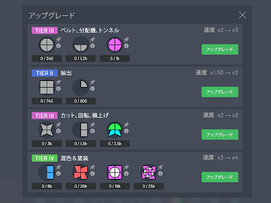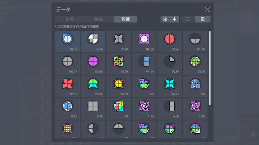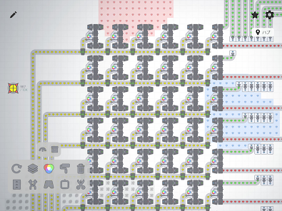 図形そのもののみならず、要求される数も指数関数的に増大していきます。そうなると生産の大規模化を図るしか道はありません序盤は図形を整えるだけで良いのですが、後半になると色付けも必要になってきます。色を混ぜ合わせて新しい色を抽出だ