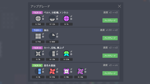 新しいツールを解放アップグレード、そして工場へ的確に導入していく…様々なツールをいろいろ実験できる楽しさ