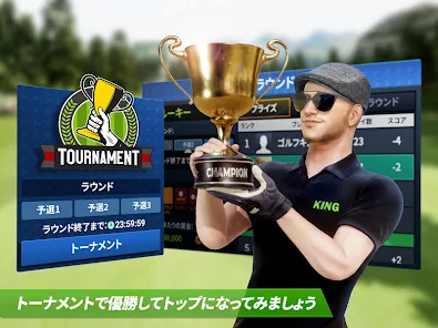 美しいコースで世界中のライバルを相手にオンライン対戦を楽しもう 勝利を収めてトロフィーを集めると、ハイレベルのツアーがアンロックされます。 ゴルフクラブを見つけてアップグレードすると、スコアがグーンと伸びます。 今日と週間のリーダーボードに名前が載ると、素晴らしいプライズと栄誉を獲得できます。 友達と対戦しよう