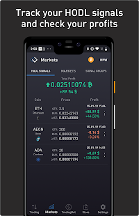 あなたのhodlシグナルを管理し、あなたの利益、コインの購入価格、金額、コインの最終価値、シグナルの日付とコインの増分を追跡します。注文セクションで購入した注文から直接信号を追加するか、コインセレクターで手動で配置します。すべての信号は詳細チャートに直接アクセスできます。