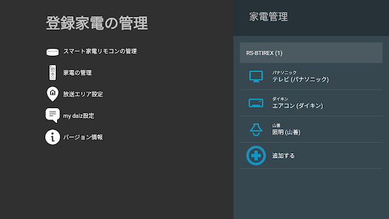 本アプリケーションは、BTIREX2本体と通信して各種家電製品をリモート操作するスマート家電リモコンです。my daiz™から送られてきたリモコン操作を赤外線に変換して出力します。