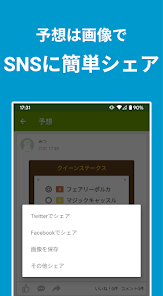印をえらぶだけで、自分の予想をカンタンに組み立てられます。予想は画像にしてTwitterなどのSNSにシェアも可能。