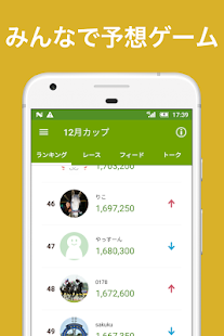 作った予想とレース結果に応じたスコアでランキング。友達と競い合って遊んだり、密かに上位を目指して楽しんだり。