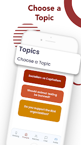 評価されることなくチャットして自分の意見を表現できる無料のオンライン ディベート アプリ。お気に入りのトピックを選び、スタンスを選んで、あなたの考えを共有してください。あなたが信じるものを守り、エコーチャンバーを壊してください!