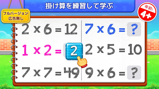 かけ算キッズ は、掛け算と数学の入門書として最適です。そのクリエイティブでカラフルなデザインは、子どもたちを引き付け、パズルを解き続けさせます。また、スマートなミニゲームに焦点を当てることで、子どもたちは常に知識を増やしていくことができるのです。掛け算の学習は通常、小学1年生、2年生、3年生から始まりますが、もっと早くから始めることもできます。
